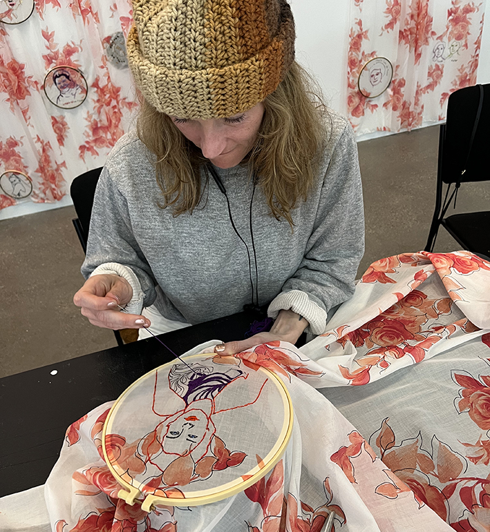 It begins with a simple gesture: to embroider the image of a woman who has marked one’s life. But the gesture does not remain individual. It enters a shared surface, where images, words, and fragments begin to coexist without hierarchy.